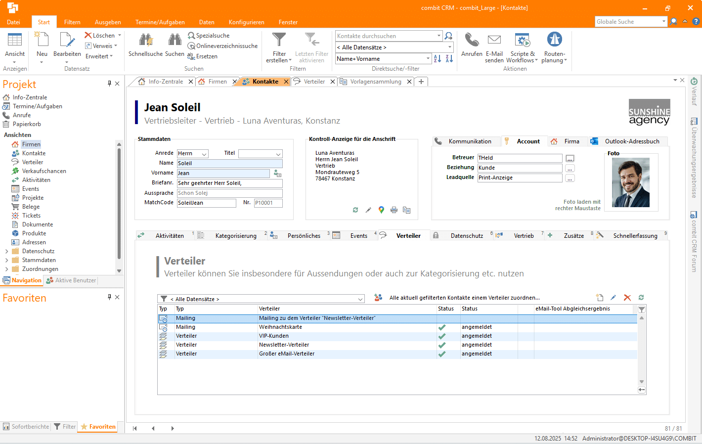 - Kontakte effizient verwalten – einzeln, in Gruppen oder per Relation